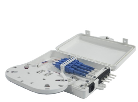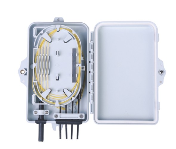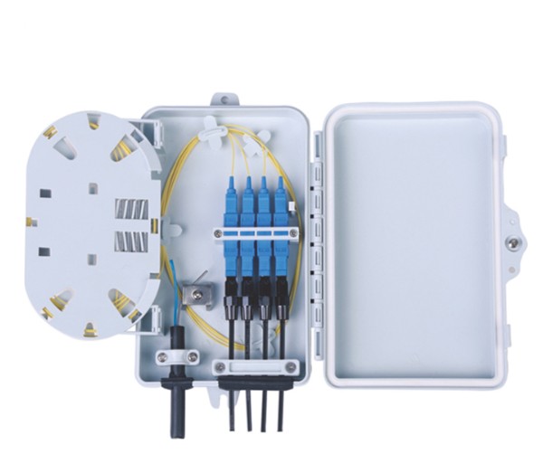 Durable 4 Core Fiber Optic Distribution Box for FTTH & FTTX networks. Weatherproof, secure, and easy to install for fiber termination and splicing.